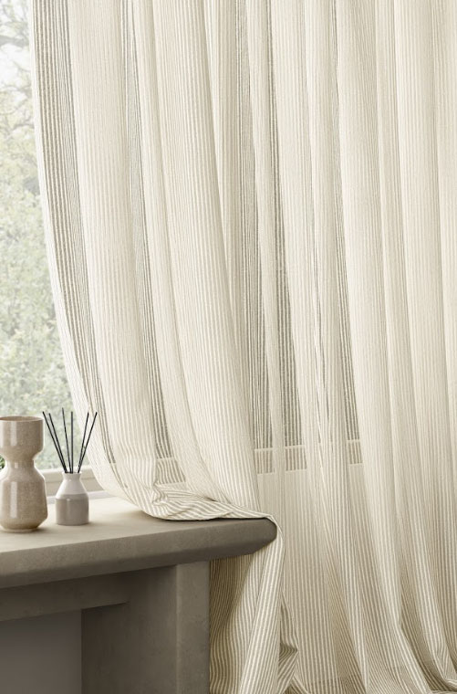 Sheerflow is a refined sheer collection designed to bring effortless elegance and natural light into your living spaces. Crafted in a luxurious wider width of 300 cms, this fabric allows for seamless, floor-to-ceiling drapery with minimal joints, creating a clean and expansive look. Its soft, airy texture gently diffuses sunlight, adding warmth and calm while maintaining privacy. With a subtle woven texture and a timeless neutral palette, Sheerflow complements both contemporary and classic interiors. Ideal for living rooms, bedrooms, and hospitality spaces, this collection delivers understated luxury with everyday practicality.
